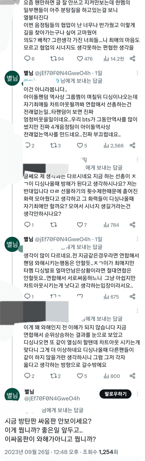 워딩 좀 보셈...자기 최애들 차트아웃 될까봐 ㅇㅈㄹ 차트아웃 시키는게 낫다 와해가 아니고 뭐냐 망상에 적반하장 미쳤네
