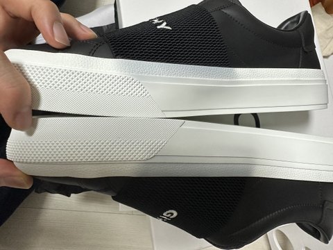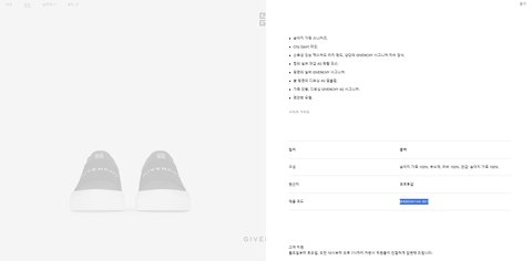 그래서 답답해서 그냥 내가 정품 하나 사자 해서 아무리 기다려도 들어오지 않던 색상이 입고가 됐다길래 압구정 유명한 명품 파는 서쪽 거리에 가서지방시 매장에 갔는데 매장 가자마자 진짜 기겁했습니다..... 지방시 공식에 없는 실밥 있는 신발이 버젓이 있습니다.. 순간 많은 생각을 했는데... 정말 지방시가 이렇게 만드나? 아니면 얘네 병행수입 사다가 마진 남기려고 이딴거 파나?? 그래서 직원에게 물어봤습니다. 내가 알기론 이 모델은 실밥이 없는데 왜 실밥이 있느냐 직원분 말이 원래 그렇게 만든답니다. 어이가 없어서... 공식홈페이지에는 실밥이 없는데 이렇게 만든다는게 말이 되느냐 물었더니 핸드폰 가져와서 보더니 이미지론 확인이 안된답니다. 누가 봐도 확인 잘 되는데요.... 그냥 완전 다른데요... 심지어 제가 갖고 있는 신발 퀄리티가 매장에 있는것보다 훨씬 좋았습니다... 매장껀 더 심하게 실밥 다 튀어 나와있고 로고는 찌그러져 있고 아웃솔엔 스크래치있고, 뒤꿈치 뒷축은 좌우 대칭 안맞게 삐뚫어져있고.... 옆에 아웃솔 실밥은 마감처리 제대로 못해서 실밥이 검정색 하얀색 번갈아 노출되고.... 하... 그럼 명품파는 유명한 백화점도 전부 병행수입을 사다가 지방시공식 정가에 판다는거잖아요??? 왜?? 서류상 진짜니까. 디자인은 달라도 서류상 진짜니까 그렇게 파는겁니다.