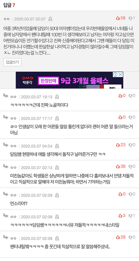 선생님 걱정마세요..판녀들은 팬티 내릴일이 변기 앞 뿐입니다.