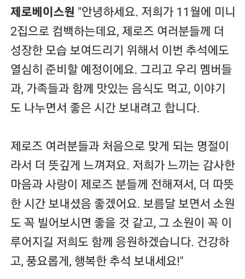다른 그룹 다 추석 인사 올라오는데