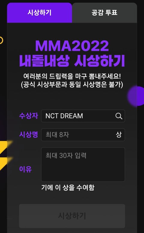 2.아티스트에 드림 검색하고 상이름 지어서 투표하기!!