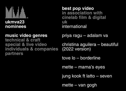 2023 UK 뮤직 비디오 어워드에서 최우수 인터내셔널 팝 비디오 부문 후보 들었음