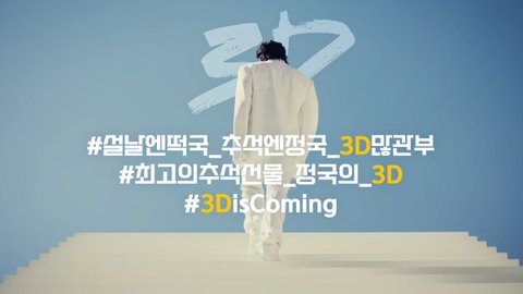 추반해줘 추석 당일발매에 컴백발표도 겨우 5일전에 나와서 아직 3D 홍보가 안된 부분이 많음 정국이가 추구하는게 단순히 케이팝스타가 아닌 글로벌 팝스타라는게 제대로 느껴지는 노래야 장르는 올드스쿨 알앤비인데 앞으로 장르상관없이 본인 목소리로 할수 있는 음악은 다 해본다니까 더 기대됨 추석 연휴에도 귀성길에도 3D 많이 들어주라