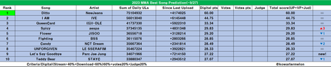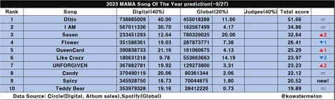 마마 올해의 노래상 - 뉴진스 Ditto 유력