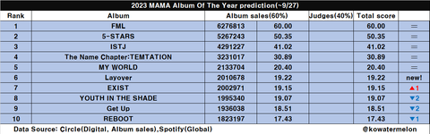 마마 올해의 앨범상 - 세븐틴 FML 앨범 유력