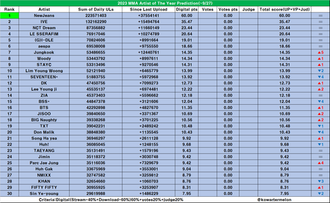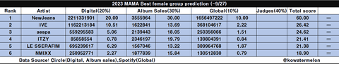 멜뮤 올해의 가수상 - 뉴진스 유력