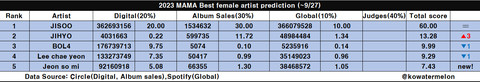 멜뮤 남자 & 여자 솔로상 - 정구, 이영지 유력