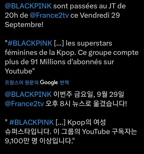 블핑 어제 프랑스 공영방송 8시 뉴스에 나옴
