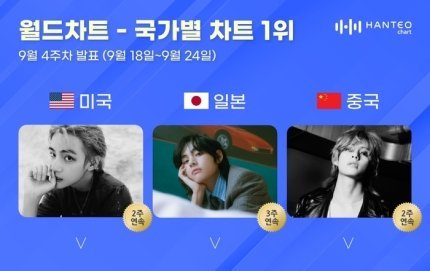 뷔 2주 연속 한터 국가별 차트 올킬