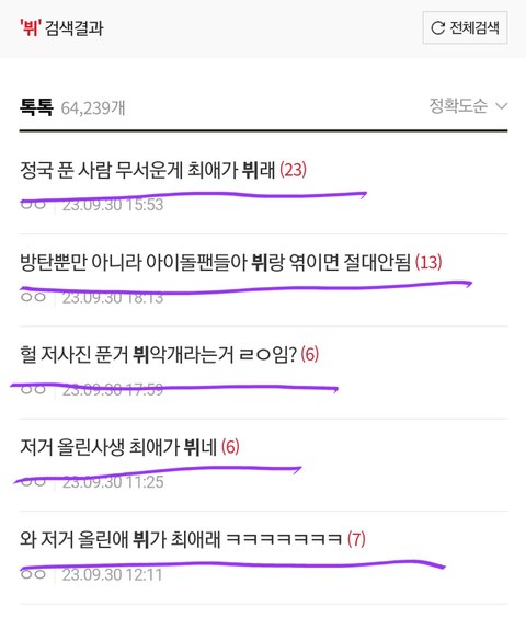 뷔로 서치하면 이렇게 뷔억까글로 도배됨