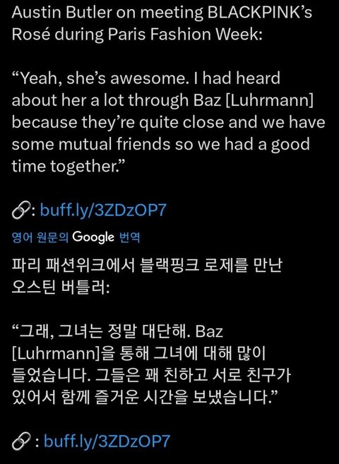 오스틴 버틀러가 로제보고 대단하대 ㅋ