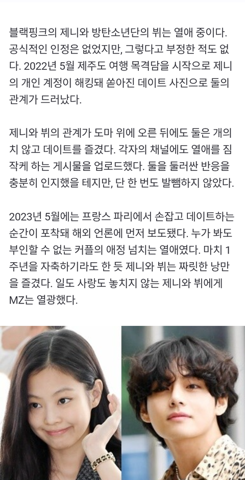 언론인들은 정국의 영상을 언급하지 않습니다. 그런데 제니와 태형의 관계가 진짜라고 보도하고 있어요.
