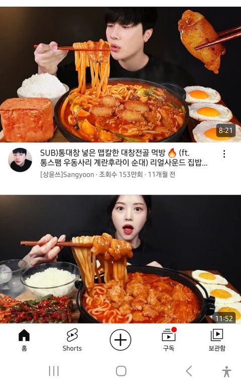 대창전골 먹방 보려고 하는데 연속으로 구도가 겹침