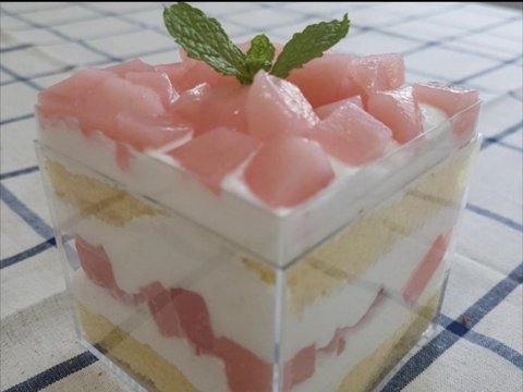 메뉴명은 복숭아 티라미수 (8천원대) 입니다.