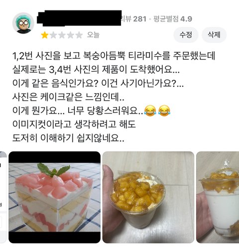 애초에 메뉴등록사진이 타카페 무단도용사진이였어요.
