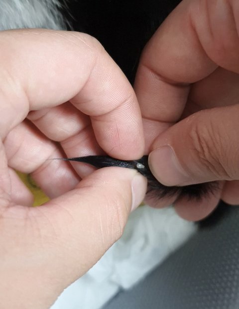 혹시나 딱지가 져서 털이 눌러붙은건 아닐까 하며 젖은 꼬리를 꺼내 털을 만지던 순간.