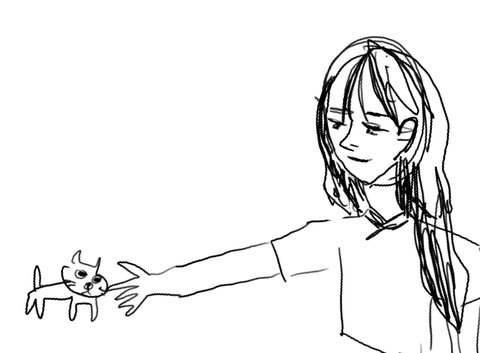 좀 길티 느낌 살리려고 일부러 고양이 만지는거 그린건데 걍 일상의 장면도 너무 작위적임 냉장고에서 물 꺼내고 물 마시는 모습... 냉장고에 먹을거 있나 둘러보는 모습... 일부러 창문에 걸터앉아 책읽는 모습..등등