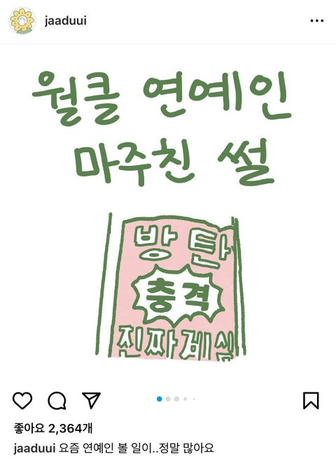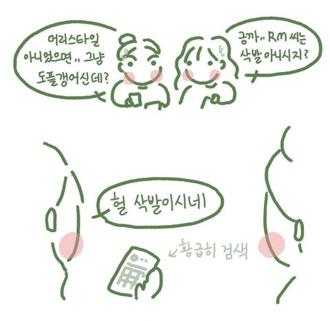 그리신 일상툰 봤어? 두더지 머리가 본인인증이 된 남준이 넘 귀엽고 웃김ㅋㅋㅋㅋㅋ보고도 모른 척 해주신 거 감사하다