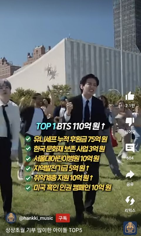 머글인데 기부 기사 꾸준히 본 멤버가.. 지민 제이홉 슈가 진 알엠(젤많이본거같음) .. 정국이 얼마전에 소아병동였나 10억 한방에 한거 보고 .. 얘네 기부 진짜 많이하는것같음