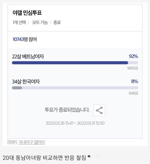 이런거 볼때마다 어이없는 점 특히 남초에서 퐁퐁남 불쌍하다 퐁퐁충 거리면서 여자들 깔땐 언제고 왜 퐁퐁남을 자처할려 하는거ㅋㅋㅋㅋㅋㅋ?? 아니 솔직히 베트남 젋은 여자가 도태남들이랑 결혼을 왜 하겠냐고 남편 돈 빨아다 지내집안 먹여살릴려 그러지 ㅋ 제발 주제파악 좀
