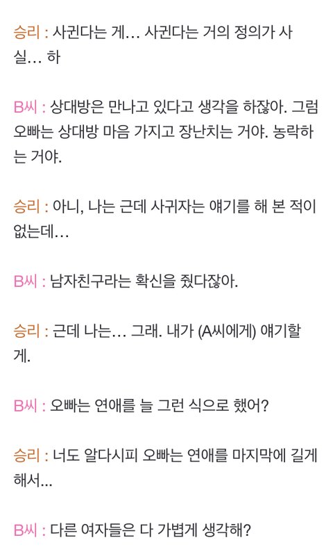 사실 놀랍지도 않음 승리 이미지 알면서 만나는 여자들이 더 신기함.... 성범죄 물의 일으켰던 사람이 순전히 자기만 사귈거라 생각한건가 ....