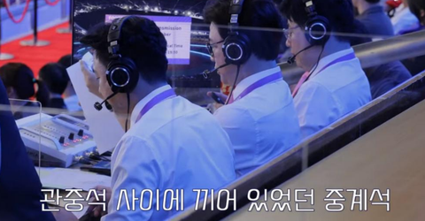 중계석이 관중석 한 가운데 섞여서 배치