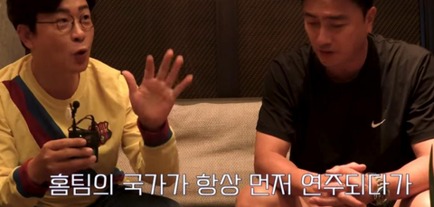 원래 홈 팀 국가 먼저 연주 → 원정팀 국가 연주가 관례인데