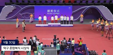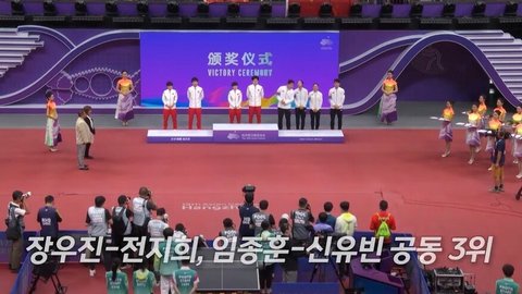 탁구 혼합복식 시상대에 선 우리나라 선수들