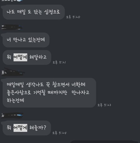 당시에는 왜 과거가지고 헤어져야되지라는 생각에 그런 소리를 듣는데도 3일 내내 미안하다고 하면서 붙잡았습니다.