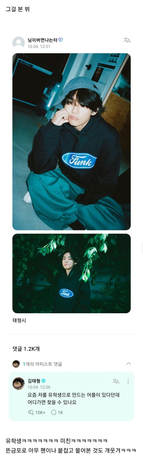 요즘 유행하는 하이틴 ai 사진을 본 방탄 뷔 반응