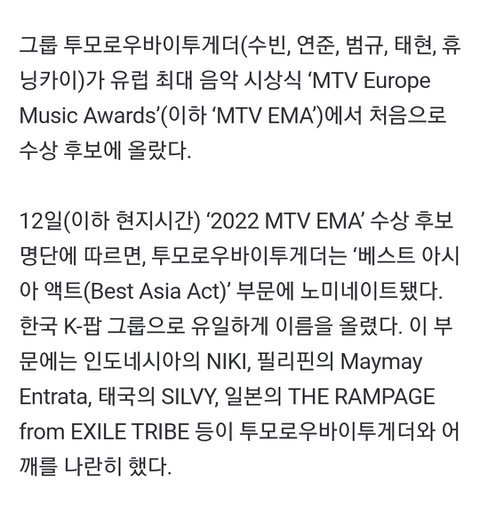EMA 3개 부문 노미(초대박