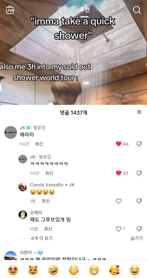 추반 원래 틱톡 웃긴 영상이나 관심분야에 댓글 겁나 달고 다님 이거도 어제 남긴거