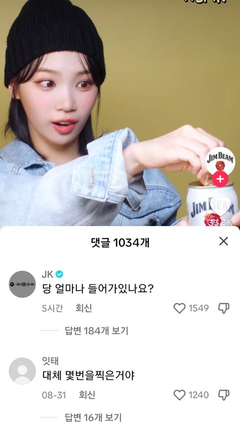 저건 짐빔 하이볼 틱톡계정이고 그냥 하이볼 당 물어본거 아닌가? 참고로 저 짐빔 모델이 채원이임