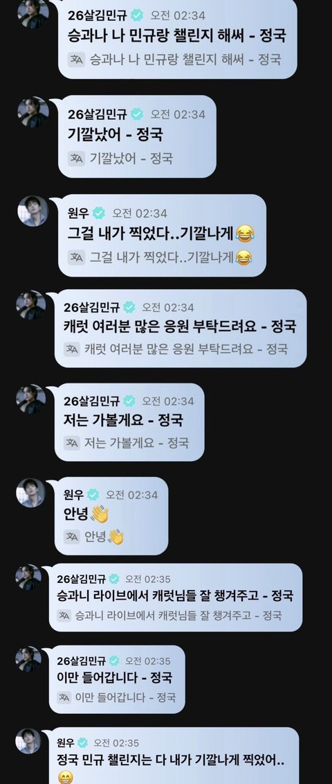 방금 정국 민규랑 커플룩 입고 챌린지 뜸 ㅋㅋㅋ