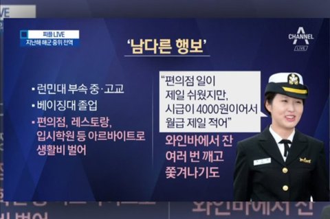 (사진3 설명) 최민정 전 해군 중위 (노소영 아트센터 나비 관장 차녀) (출처: 채널A)