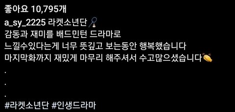 라켓소년단이 인생드라마라고 SNS에 올림!