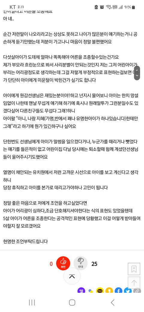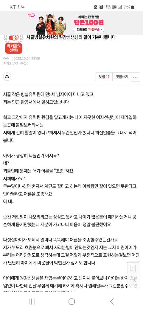 시골병설유치원의 원감선생님의 말이 기분 나쁩니다.