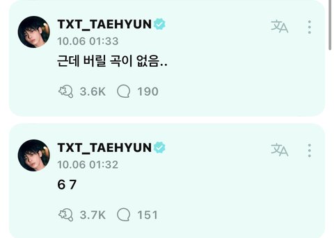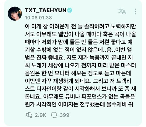 이번 곡 진짜 다 좋나보다 멤버들도 그렇고 저번에 범규도 마스터 음원 계속 듣는다고 그랬었는데 만족도 최상인거 같아서 너무 기대된다 ..