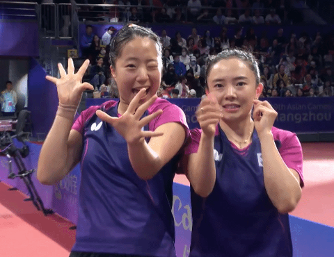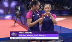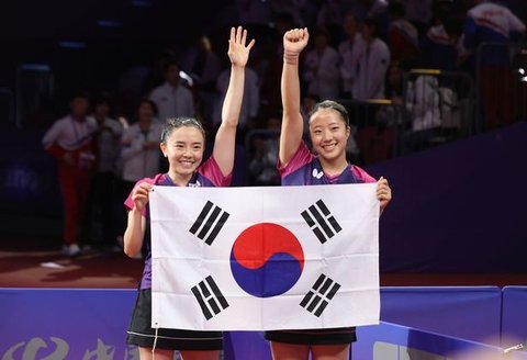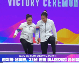 탁구 여자 복식 금메달을 거머쥔 신유빈과 전지희 선수
