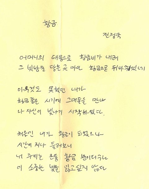 황금이라는 단어가 정국의 아이덴티티 그 자체 같기도 하고