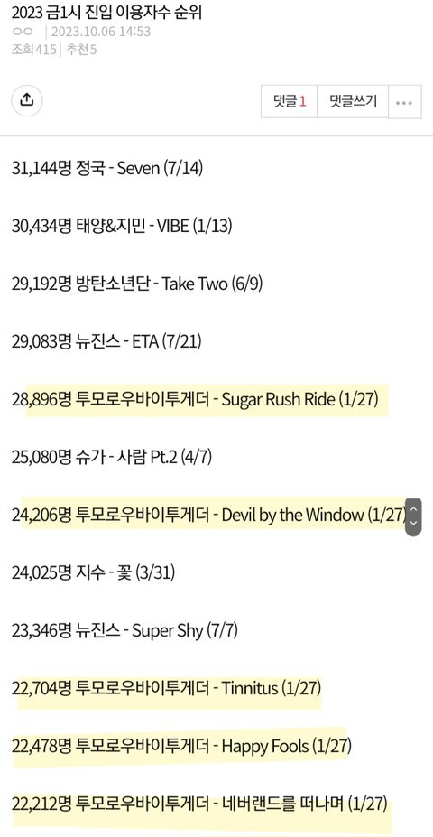 2023 1시 진입 이용자수래..(엔터 주웠어