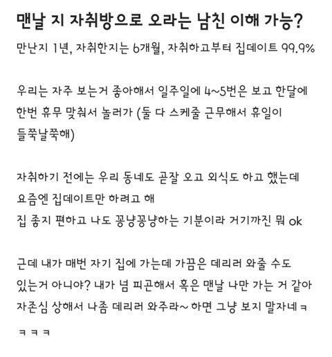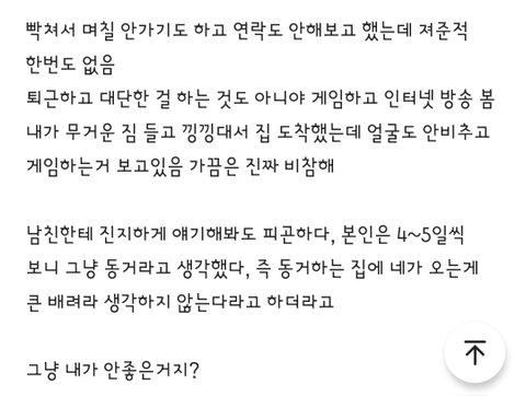 딱봐도 이제 쓰니한테 시간,돈 쓰기 아까워진건데 쓰니는 아직 남친이 그래도 좋다하니 그집가서 가성비섹파해주면 되겠네요