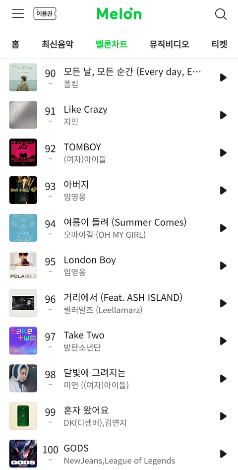 미진입하다가 잠깐 탑100위 찍고 사라짐; 개충격이네