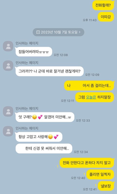 ㅈㄱㄴ... 나한테 신경 못써서 미안하다는데