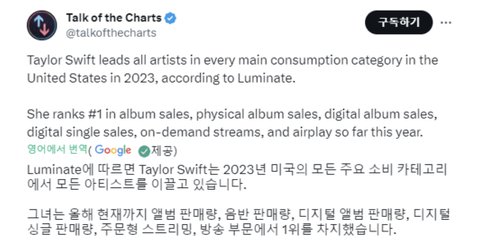 주어 : 테일러 스위프트