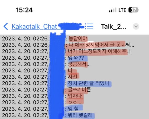 일단 대충 증거 가져옴 ,, 카톡 대화 백업해놓은 거라 저렇게 뜨는 거고 카톡 대화내용 맞음