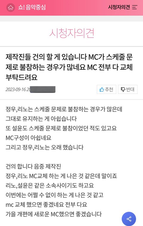 맨날 정우 리노 엠씨 오래한다 언제 하차하냐 교체해라 염불하던 정병새끼 한 마리 있었는데 얘가 더쿠에서도 두명 엠씨 교체플 까플 주기적으로 열었고 디씨에서도 맨날 두명 묶어서 여돌이랑 엮어대거나 쳐 패면서 하차하라고 정병 싸댔음