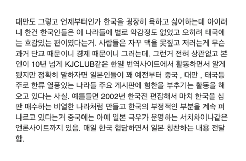대만도 일본중국 못지않게 한국 혐오하는데 모르는 사람들 ㅈㄴㅈㄴ많아서 타카페에서 퍼옴