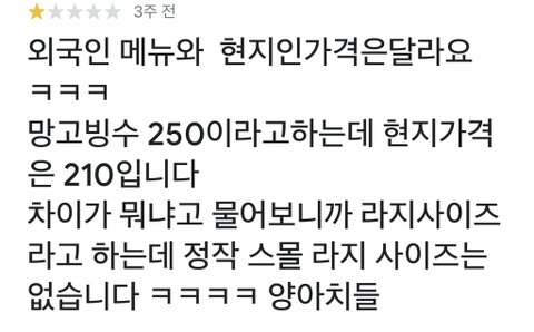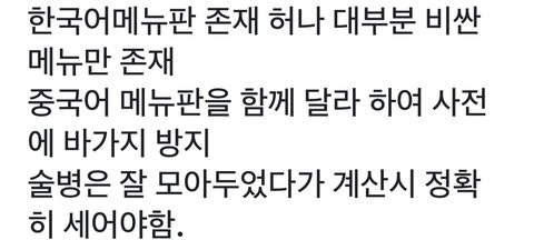 중국어 메뉴판이랑 한국어 메뉴판 가격 다른거 유명함