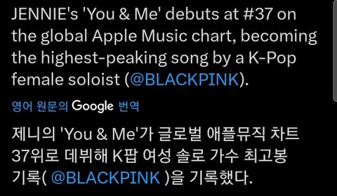 애플뮤직 글로벌 차트 역대 케이팝 여솔 일간 최고 순위 이틀 홍보에 나온지 1년된 팬선물곡 성적이 ㅈㄴ 지리는듯 심지어 드레이크랑 동발 안했으면 훨씬 높았음..